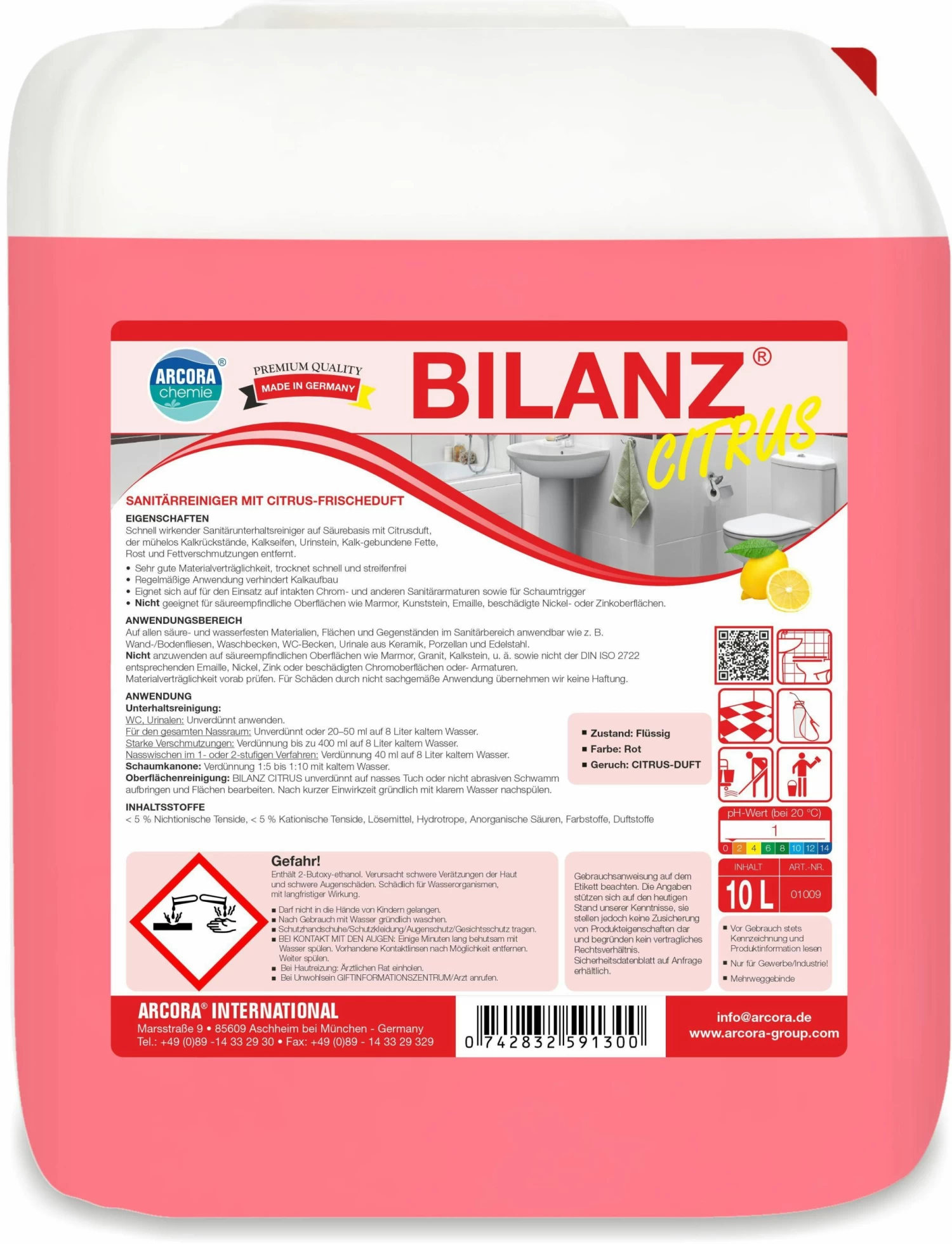 Schnell wirkender Sanitärunterhaltsreiniger auf Säurebasis mit Citrusduft, der mühelos Kalkrückstände, Kalkseifen, Urinstein, kalkgebundene Fette, Rost und Fettverschmutzungen entfernt.