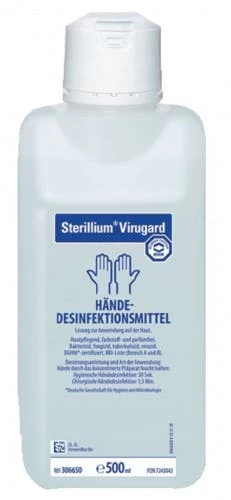 Bode Sterillium Virugard Händedesinfektion, RKI Hochwirksames viruzides Händedesinfektionsmittel Besonders wirksam gegen gehüllte und unbehüllte Viren Viruzid (HBV, HIV, BVDV*, Adeno-, Herpes-, Papova-, Polio-, Rota-,Vacciniaviren) Empfohlen vom Robert-Koch-Institut bei Noroviren Farbstoff- und parfümfrei Zum Einreiben Speziell für Arbeitsbereiche mit erhöhter Infektionsgefährdung Kurze Einwirkzeit Trocknet schnell und rückstandsfrei RKI zertifiziert Lieferumfang: 4 Flaschen mit je 1 Liter