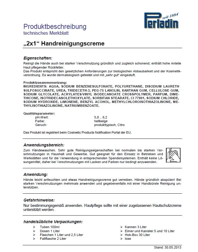 Perladin 2×1 HandreinigungsCreme 1L Handreinigung Handseife 1 Liter Werkstatt Handwerk