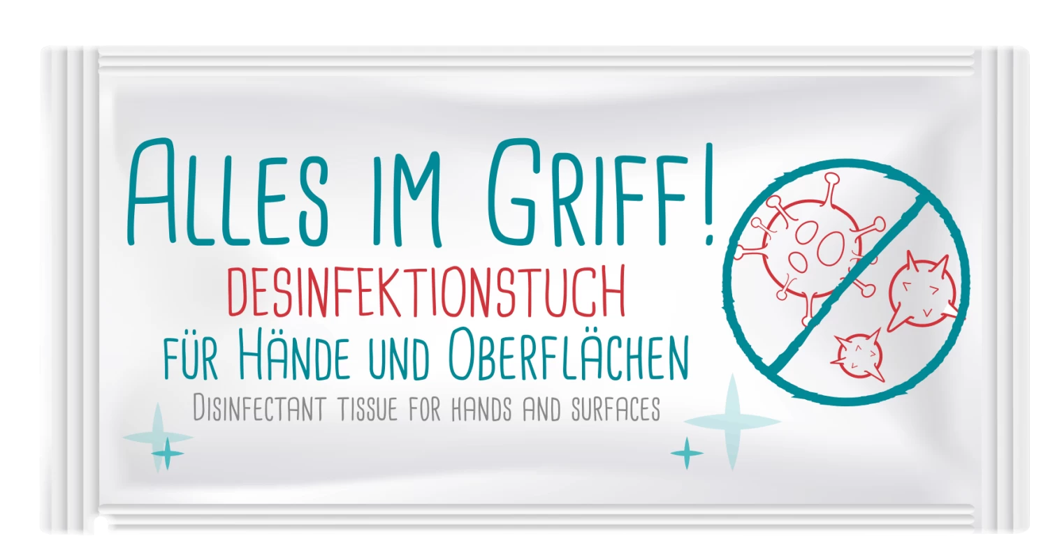 Die zu desinfizierenden Flächen und Gegenstände sorgfältig mit dem getränkten Hygienetuch abwischen. Dabei ist auf eine vollständige Benetzung zu achten. Während der gesamten Einwirkzeit feucht halten.